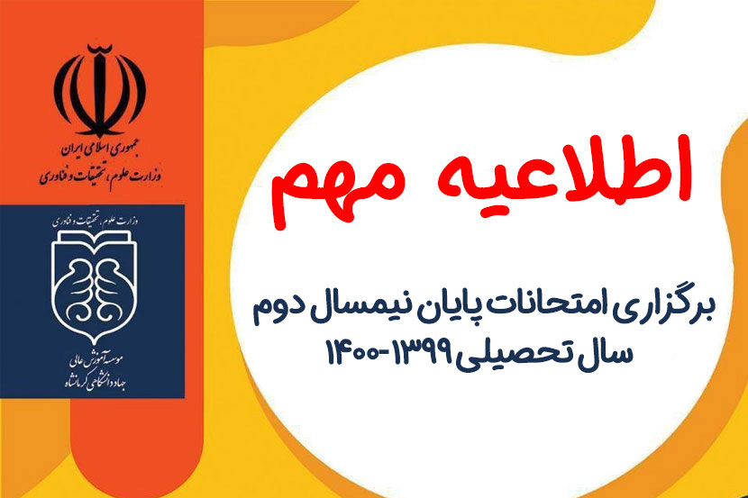 دانشجوی گرامی؛با سلام، ضمن آرزوی سلامتی و موفقیت و تشکر از همراهی شما در برگزاری کلاسها به صورت آموزش مجازی، درخصوص امتحانات پایان نیمسال دوم سال تحصیلی 1399-1400 موارد زیر به استحضار می رسد.